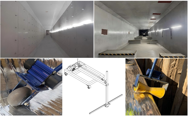 自工程开工以来,项目团队主动作为、科学谋划、精准部署,克服连续阴雨、地势低洼、土质不良、地下水位高等严峻挑战,通过全力抢通施工便道,实现南北两侧同步推进综合管廊、管线及道路结构施工,采用全断面交叉作业,有效打破不利条件制约。施工高峰时期,现场高效集结60余台各类机械和700余名作业人员,构建人机协同、高效运转的攻坚格局。针对起步区地下水丰富带来的结构防水难题,项目团队坚持技术创新,研发应用阴阳角弧形压辊、止水带收纳固定装置、侧墙防水提升压实机等多项专用机具,有效破解防水卷材铺贴质量控制难题,提升工程实体质量。