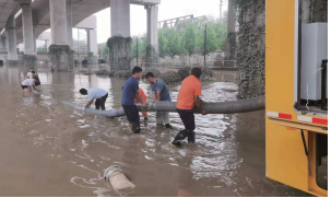 城建集团应急救援队刚赶到郑州时,郑州正下着中雨,当时京沙北延下穿立交积水约9米深,双向八车道的路面有400多米被淹,水中还有被淹没的车辆、杂物,排水作业存在一定安全风险隐患。为确保积水点强排任务尽快完成,早日让恢复沿线交通和周边居民生产生活,城建集团分别于22日晚22时、23日上午6时,从河南平顶山项目部和济南紧急抽调了16名队员增援,根据任务分配立即投入防汛救灾工作。