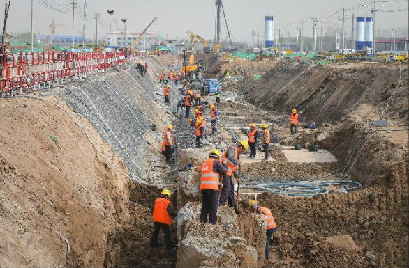 来到六分公司施工范围,30余名管理人员、250余名施工人员各司其职、紧张有序地忙碌;打桩机、挖掘机、装载机,马不停蹄地运转;桩头破除声、钢筋切割声不绝于耳。