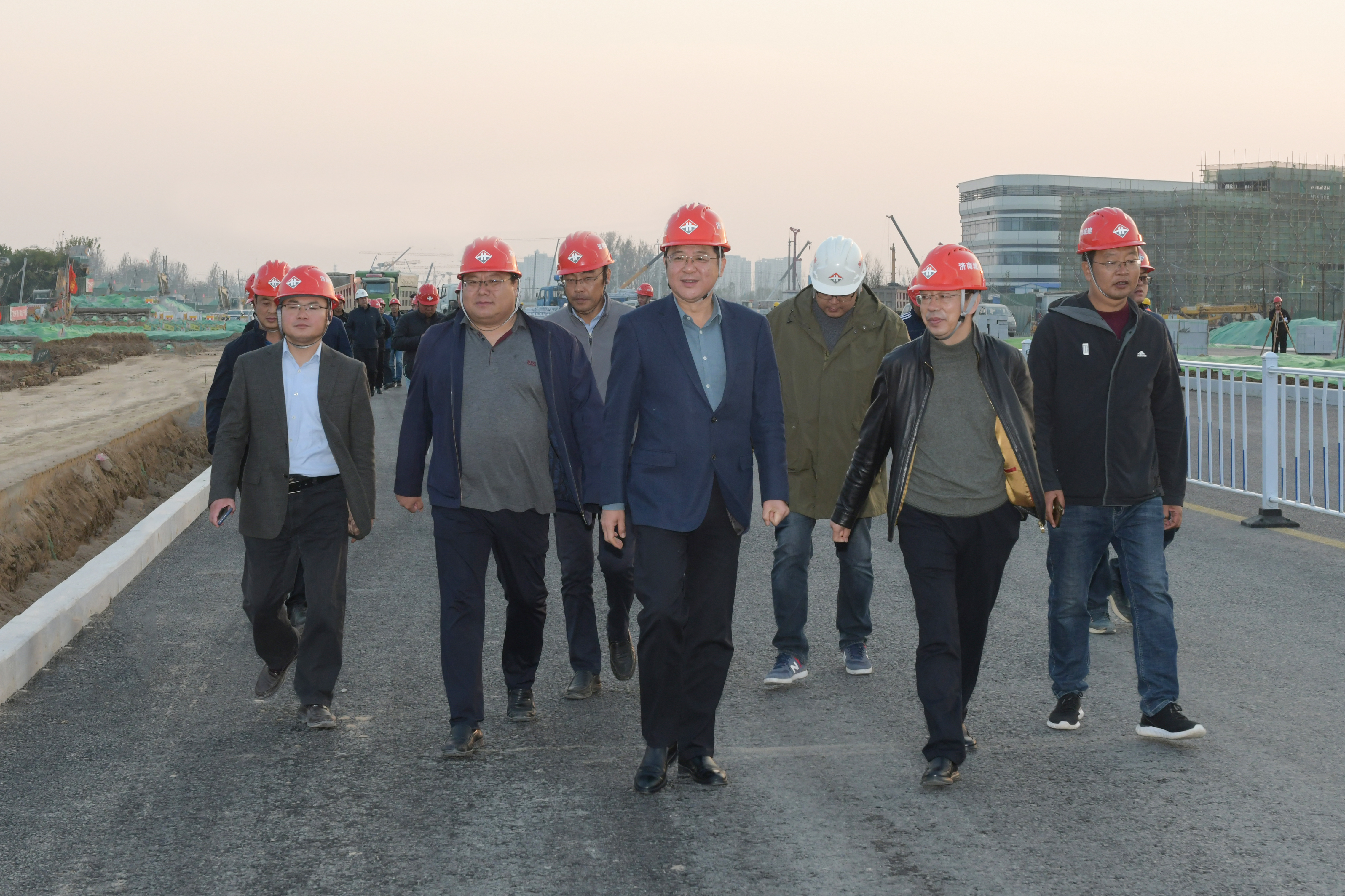 牟晓岩董事长一行来到黄河大道一期工程三标段施工现场,自南往北一路步行全线察看了工程施工情况,并现场听取了工程施工进度安排、施工组织、施工管理等各项工作。