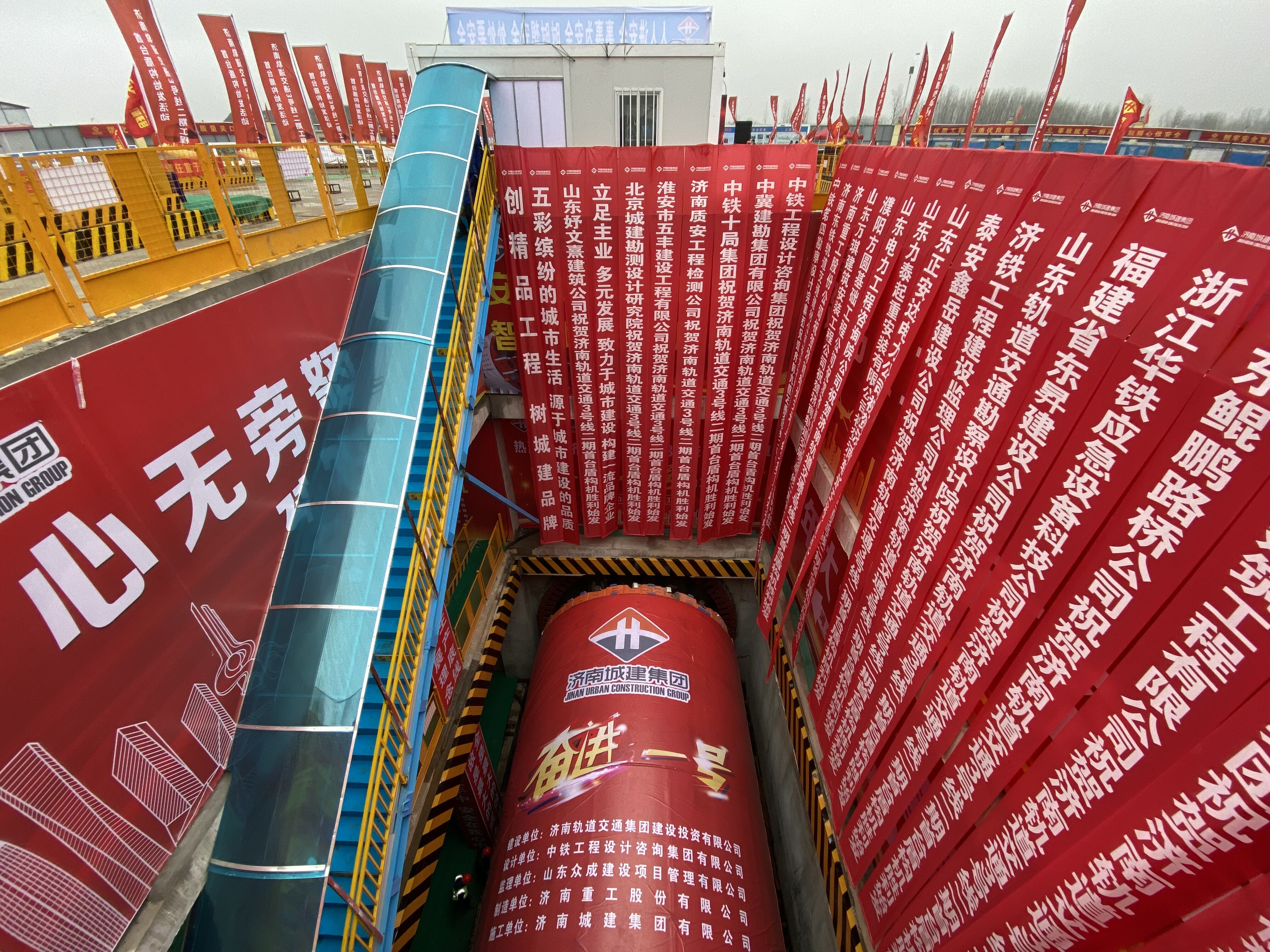 11月21日上午,济南轨道交通3号线二期工程首台盾构“奋进一号”始发活动在集团承建的稻香站施工现场举行。济南轨道交通集团党委书记、董事长陈思斌,总经理王伯芝,济南建设集团党委书记、董事长张海平,集团党委书记、董事长、总经理牟晓岩等领导参加活动。